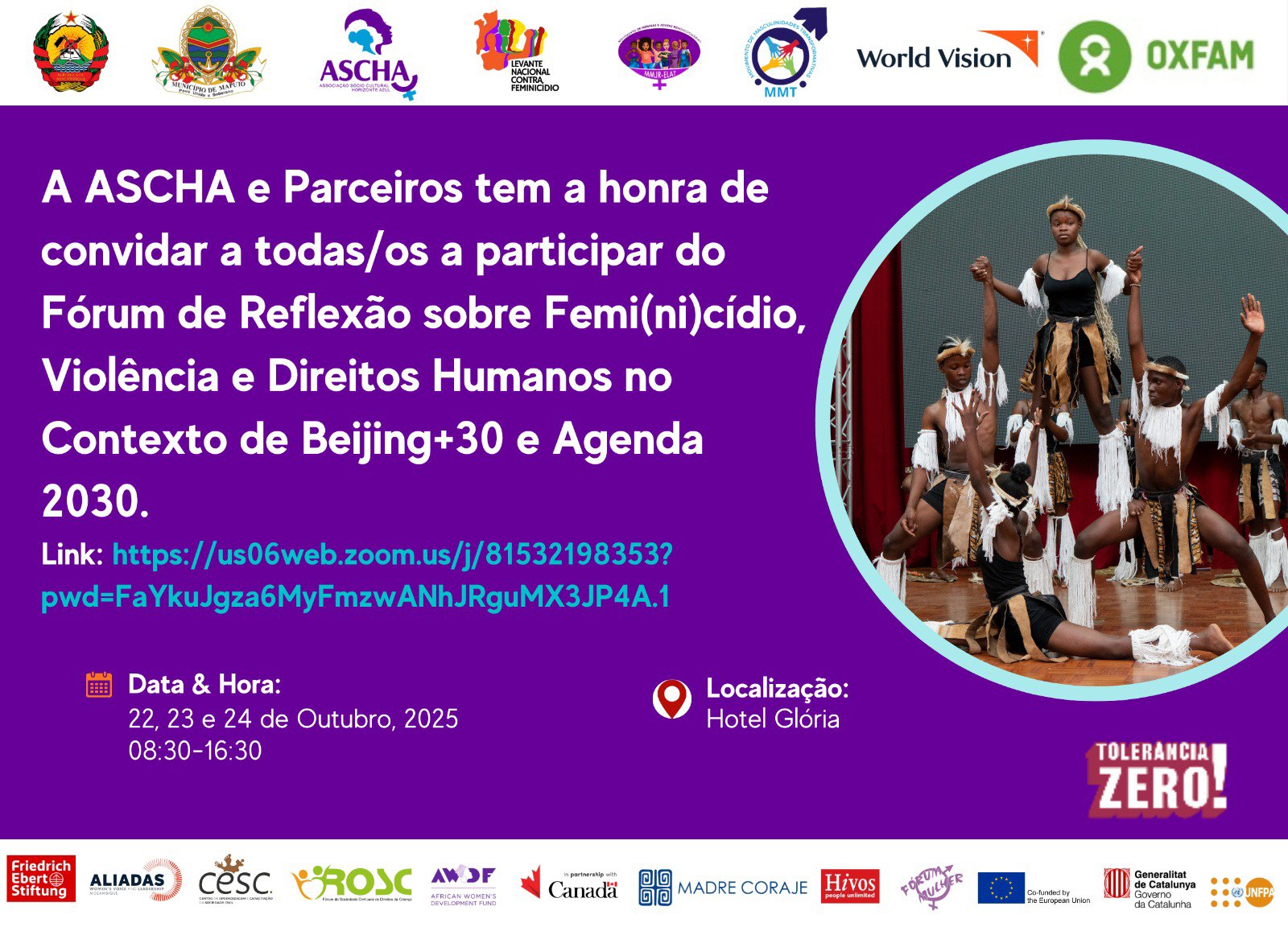 A Associação Sociocultural Horizonte Azul (ASCHA) realiza o Fórum Provincial de Reflexão sobre Direitos Humanos das Mulheres, Mulheres Jovens e Raparigas, Igualdade de Género e Violência Baseada no Género, Feminicídio, no contexto de Beijing+30 e da Agenda 2030.